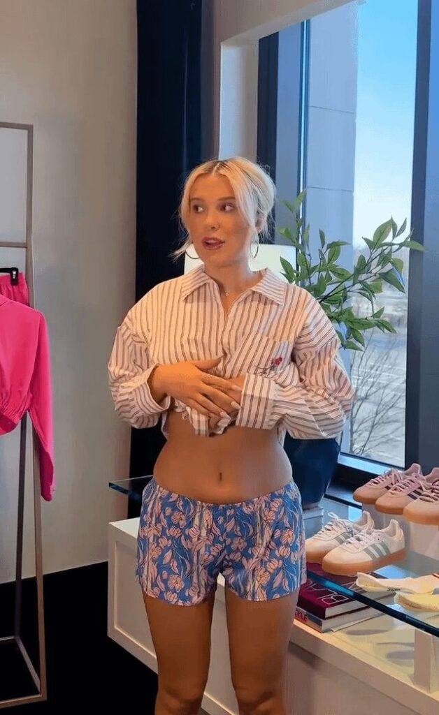 Known for her versatile style, Millie proves that you don’t need a red carpet to make a statement. Her choice of denim shorts paired with a minimalist top showcases her ability to look effortlessly cool while staying true to her authentic self. At The Cute Celeb, we’ve gathered the best angles of this viral look to help you recreate her signature summer vibe.